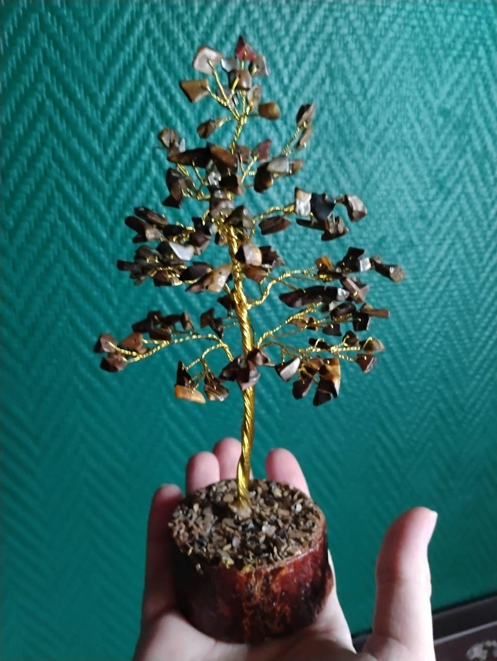 Sichere SSL-ZahlungSteigern Sie die Energie Ihres Raumes mit unserem Tigerauge-Baum, einem eleganten und heilenden Dekorationsstück. Dieser Baum hat Blätter aus Tigerauge, einem Edelstein, der für seine kraftvollen energetischen Eigenschaften bekannt ist. Der Sockel besteht aus Neemholz, einem heiligen Baum vom indischen Subkontinent, der für seine medizinischen und metaphysischen Eigenschaften bekannt ist und Heilung, Schutz und spirituelles Wachstum symbolisiert.