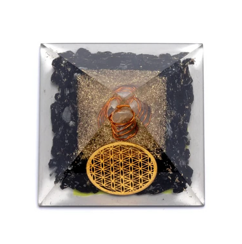 Die Black Shield Pyramide ist ein Orgonit für Schutz und Erdung. Sie besteht aus Obsidian , einem Vulkangestein mit kraftvollen reinigenden Energien, und ist durch eine Kupferspirale verstärkt. Sie wirkt als Barriere gegen negative Einflüsse und unerwünschte Energien. Ihre Pyramidenform verstärkt den Energiefluss und fördert so innere Stabilität und geistige Klarheit.