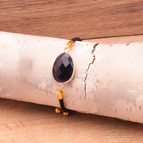 Bracelet Aube Violette – Améthyste & Cordon Ajustable Doré