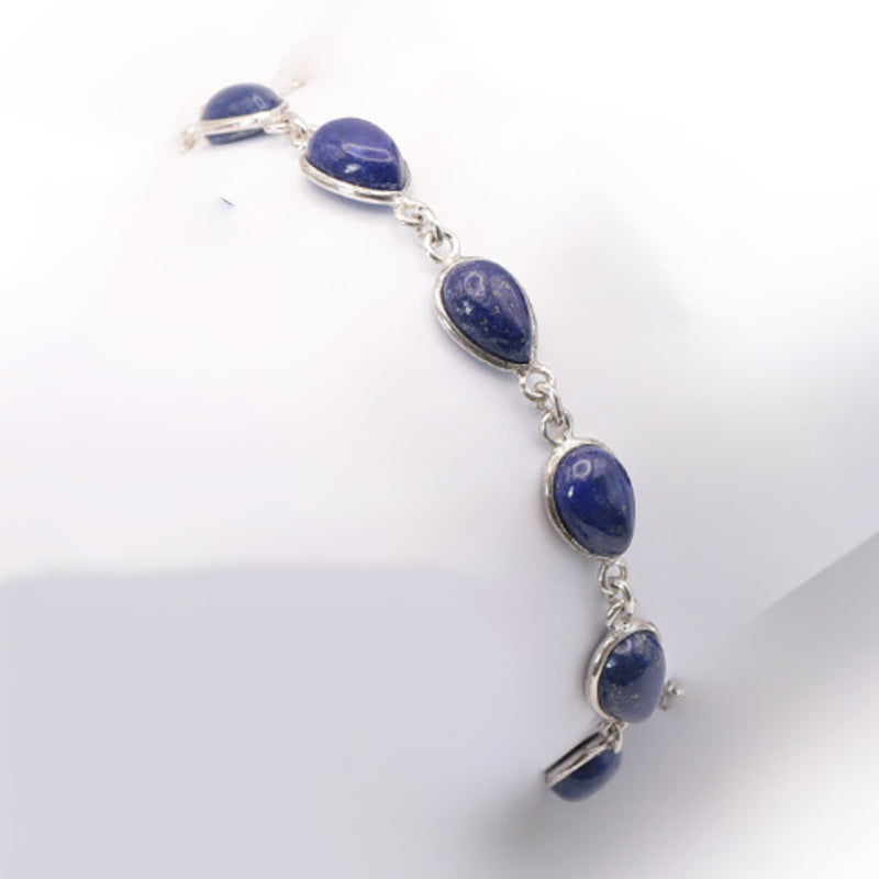 Le rechargement énergétique peut se faire à la lumière de la lune ou à la lumière du jour indirecte. La lumière solaire forte est à éviter, car elle peut altérer les nuances de bleu. L’argent 925 peut être entretenu avec un chiffon doux pour retrouver son éclat naturel. Manipuler le bracelet avec soin permet de préserver ses maillons et la tenue des sertissages.