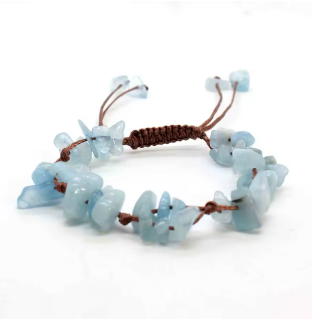 La pulsera Flujo Interior de Aguamarina es una joya espiritual diseñada para acompañar la calma emocional y la expresión fluida en la vida diaria. Trenzada a mano con técnica de macramé, destaca una única piedra natural: la aguamarina, reconocida por sus suaves y clarificadoras vibraciones.