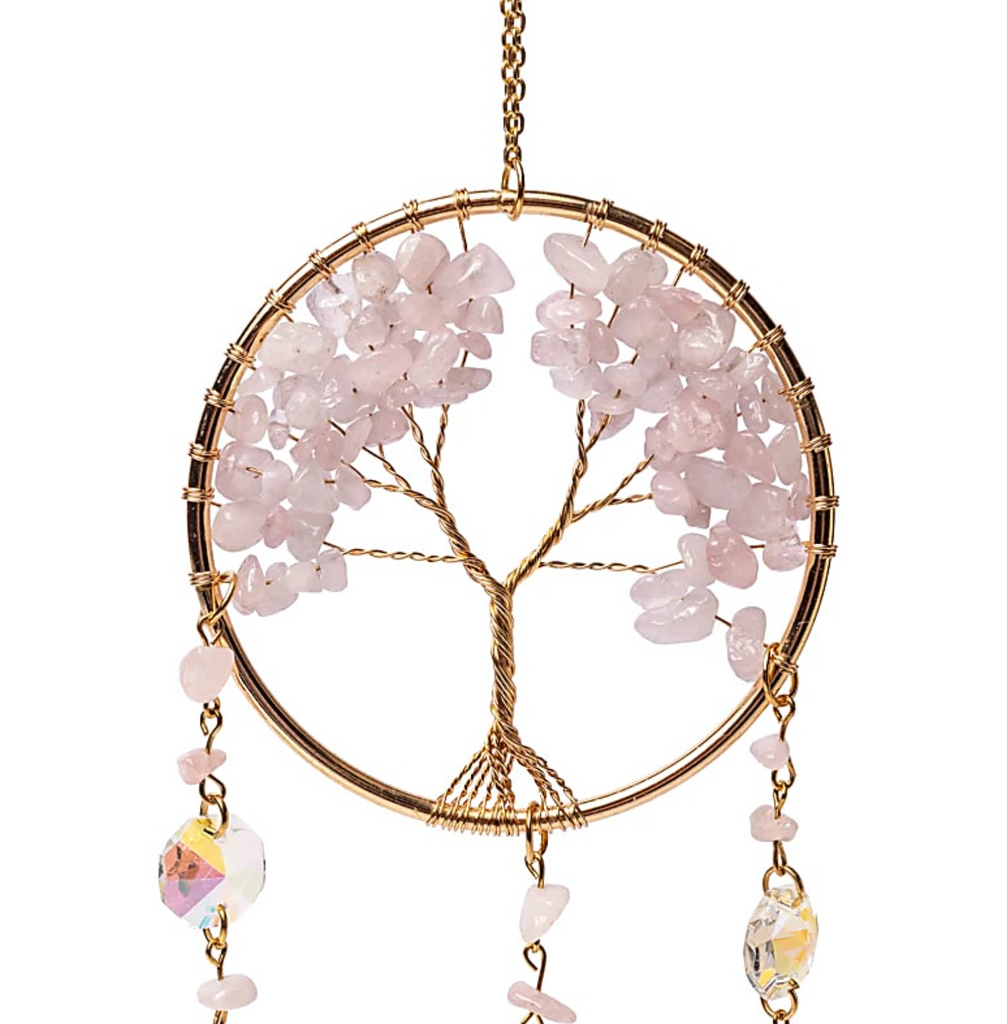 Paiement Sécurisé SSLApportez une touche de douceur et de lumière à votre intérieur avec cet attrape-soleil orné d’un Arbre de Vie en quartz rose naturel.