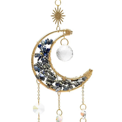 Paiement Sécurisé SSLLaissez la magie de la lumière illuminer votre intérieur avec cet attrape-soleil en forme de Lune, orné de pierres naturelles de lapis lazuli et de cristaux étincelants.