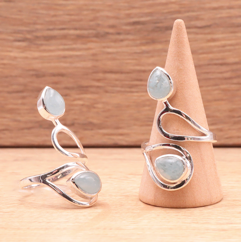 La bague « Souffle d’Azur » est une création délicate et apaisante, sculptée en argent 925 et ornée de deux aigues-marines naturelles à l’éclat cristallin. Son design ouvert et organique évoque la fluidité de l’eau et la légèreté d’un souffle marin, comme une vague lumineuse figée dans le métal. Les pierres de qualité AAA, taillées en gouttes bleu clair aux reflets translucides, captent la lumière pour révéler de subtiles nuances allant du bleu glacier au bleu lagon.