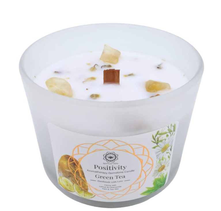 La Bougie Green Tree “Positivité” Citrine & Thé Vert est bien plus qu’une source de lumière — c’est une invitation à rayonner.