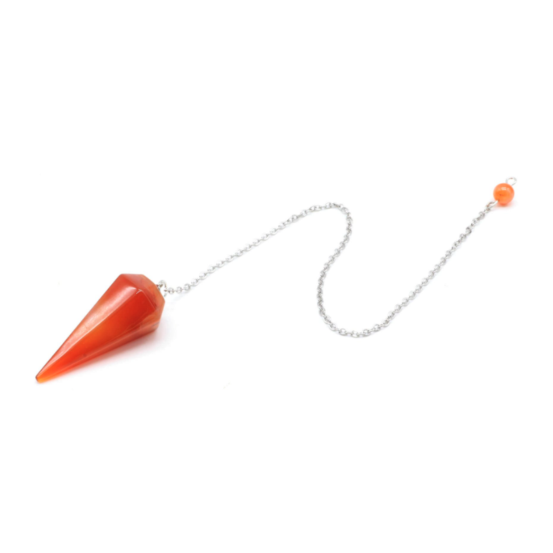 La cornaline, quant à elle, renforce le lien entre le pendule et le praticien en apportant ancrage, clarté et chaleur énergétique. C’est un pendule qui « vibre » la confiance, idéal pour ceux qui débutent ou cherchent à renforcer la justesse de leurs ressentis.